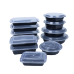 750ml Plastic Black Base Rectangular Container with Lids,Takeout Food Container