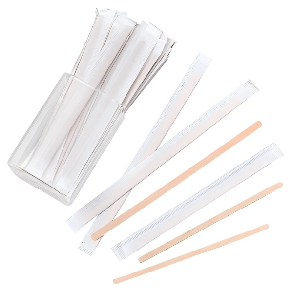 Natural birch wood coffee stirrers, individually wrapped for hygiene. Compostable & eco-friendly for cafes, hotels & offices. Custom logo, wholesale bulk supply. Shipping to Caribbean & worldwide. Request a quote.