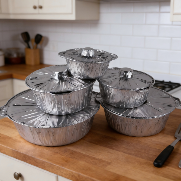 Complete Round Aluminum Foil Pots with Lids – Full Size Range for Catering,Hot Pot & Events