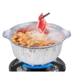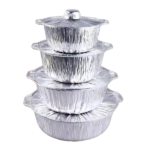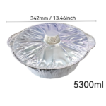Extra large round disposable foil pot with lid, designed for big events, banquets and commercial catering. 338mm, 5300ml, durable and easy to use.